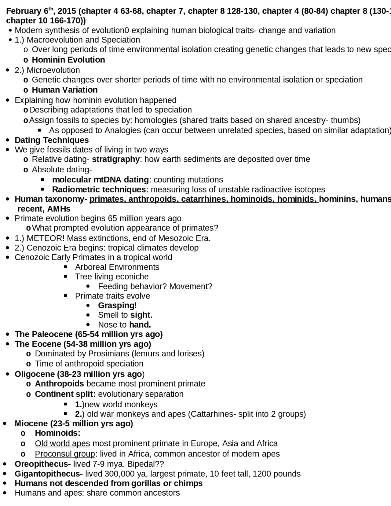 Modern Synthesis Of Hominin Evolution And Human Variation Test 2 Anth 1102 Study Notes Introduction To Cultural Anthropology Docsity